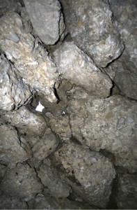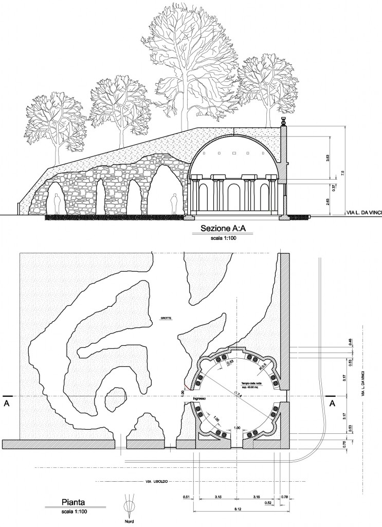 Il tempio della notte come del resto la volta delle grotte è stata realizzata mediante l’utilizzo dell’arco e della volta quindi strutture completamente compresse dal punto di vista statico. E’ stata utilizzata questa struttura ad arco e volta anche perché il materiale utilizzato non avrebbe permesso di operare diversamente.