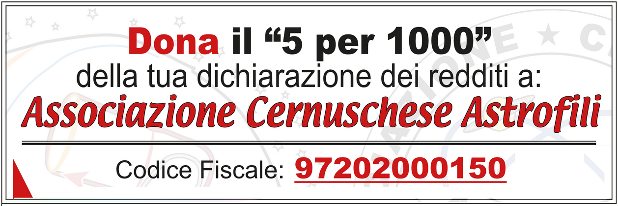 Se sceglierai di donare il tuo 5 per mille nel 2026 a Associazione Cernuschese Astrofili, sappi che farlo è semplice e non costa nulla.